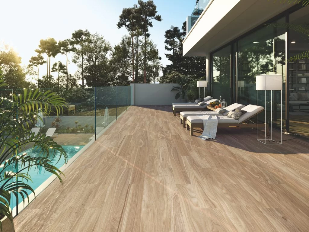Los suelos de exterior son perfectos para espacios al aire libre como terrazas, patios, zonas de piscina y áreas recreativas en jardines. Su destacada resistencia a la humedad, altas temperaturas y cambios térmicos los convierte en una opción fiable para ambientes exteriores.